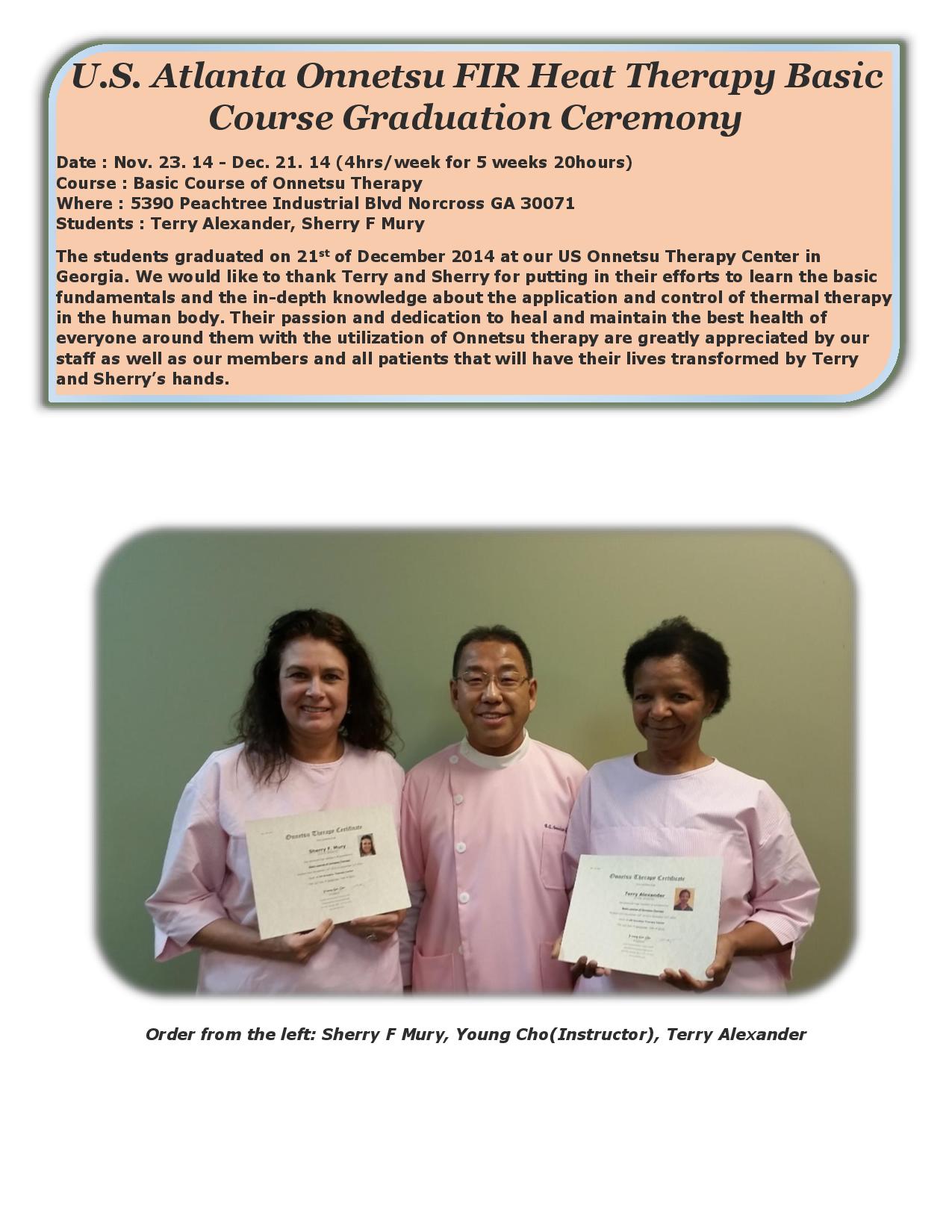 US Atlanta Onnetsu FIR Heat Therapy Basic Course Graduation Ceremony
